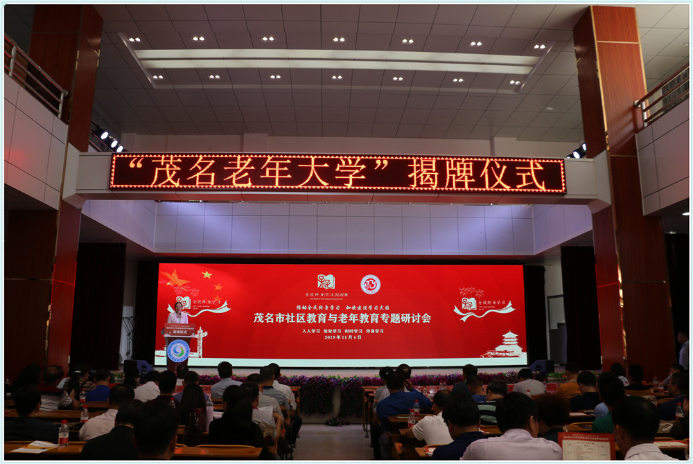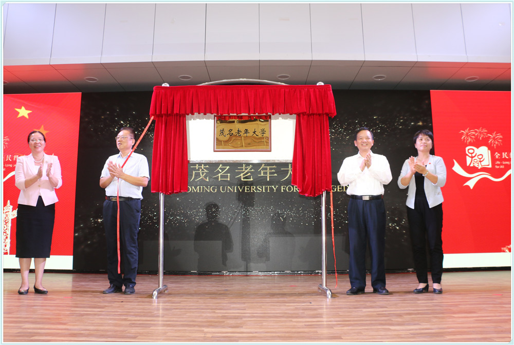 2019年11月4日,茂名开放大学在学校礼堂隆重举行“茂名老年大学”揭牌,广东开放大学党委委员、副校长瞿志印同志,原茂名市政协副主席、茂名油城老年大学校长陈超然同志,中共茂名市委教育工委委员、茂名市教育局党组成员、副局长麦丽敏同志;茂名开放大学党委书记、校长董艳清同志共同为“茂名老年大学”揭牌。
