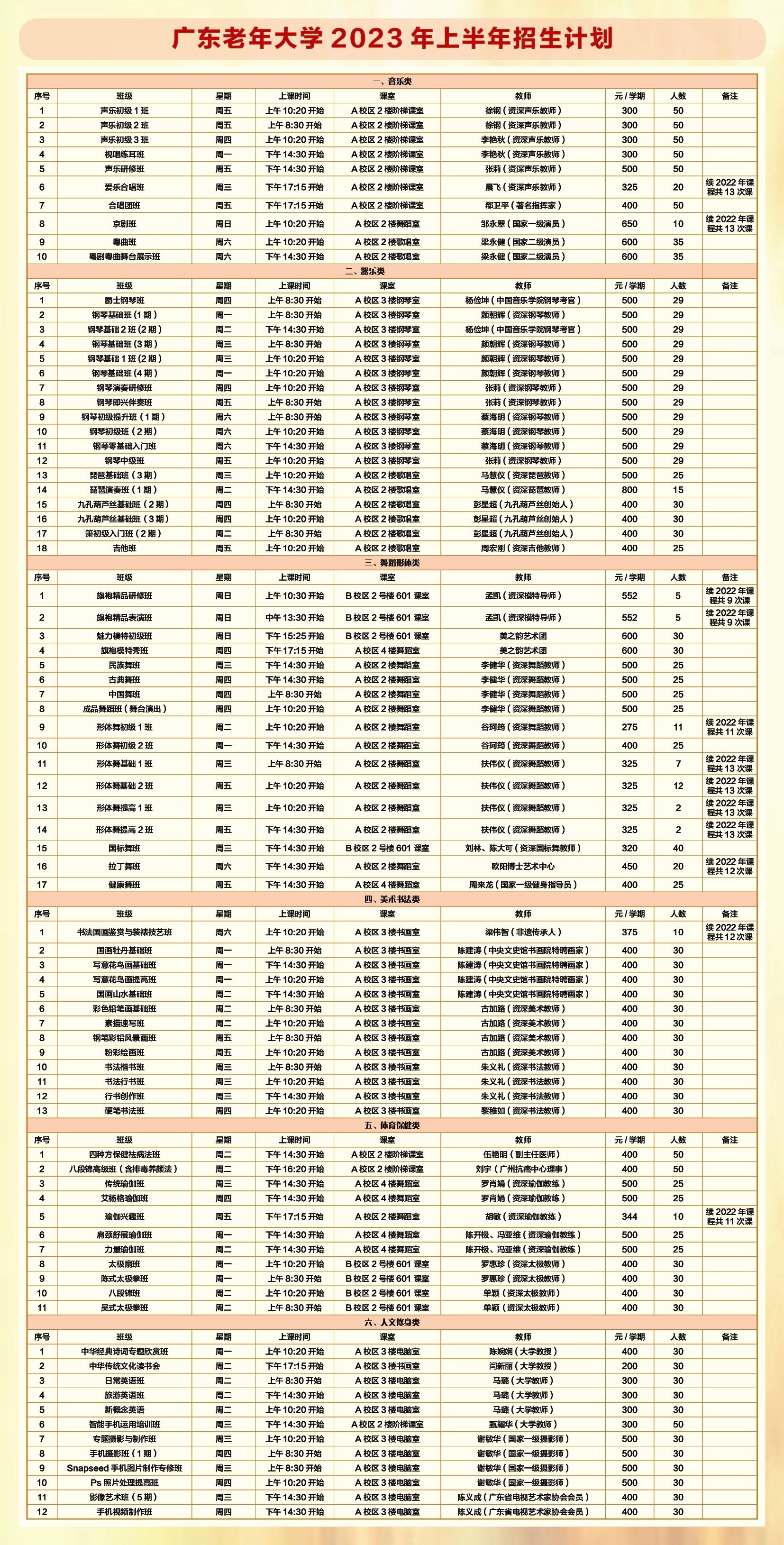 广东老年大学2023年春季学期初定于3月11日线下开学,现招生如火如荼中,尚有少量剩余名额,欢迎关注“广东老年大学微信公众号”了解详情。